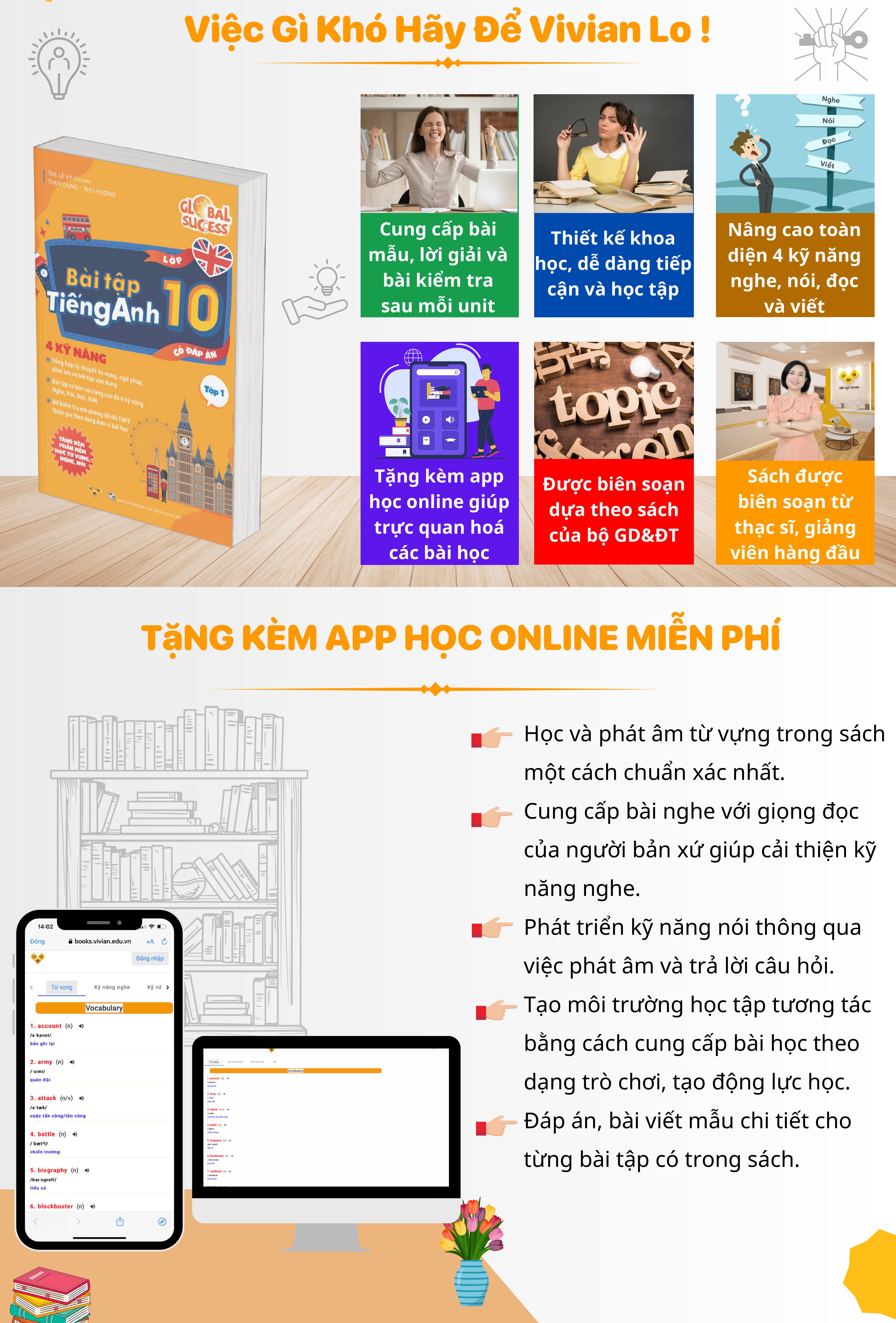Anh ngữ Vivian khẳng định vị thế tiên phong trong lĩnh vực giáo dục công nghệ với hơn 10.000 khách hàng đã tin yêu và đánh giá tích cực về trải nghiệm công nghệ - tri thức. Áp dụng công nghệ hơn 10 năm với tinh thần 'Enhance Learning Experience', Vivian đã cải thiện và nỗ lực cung cấp cho học viên trải nghiệm tốt nhất cùng kiến thức chuẩn xác nhất. Chỉ từ một mã QR nhỏ, trải nghiệm và hiệu quả học của các sách THCS, THPT và sách luyện thi VSTEP đã nâng lên tầm cao mới.