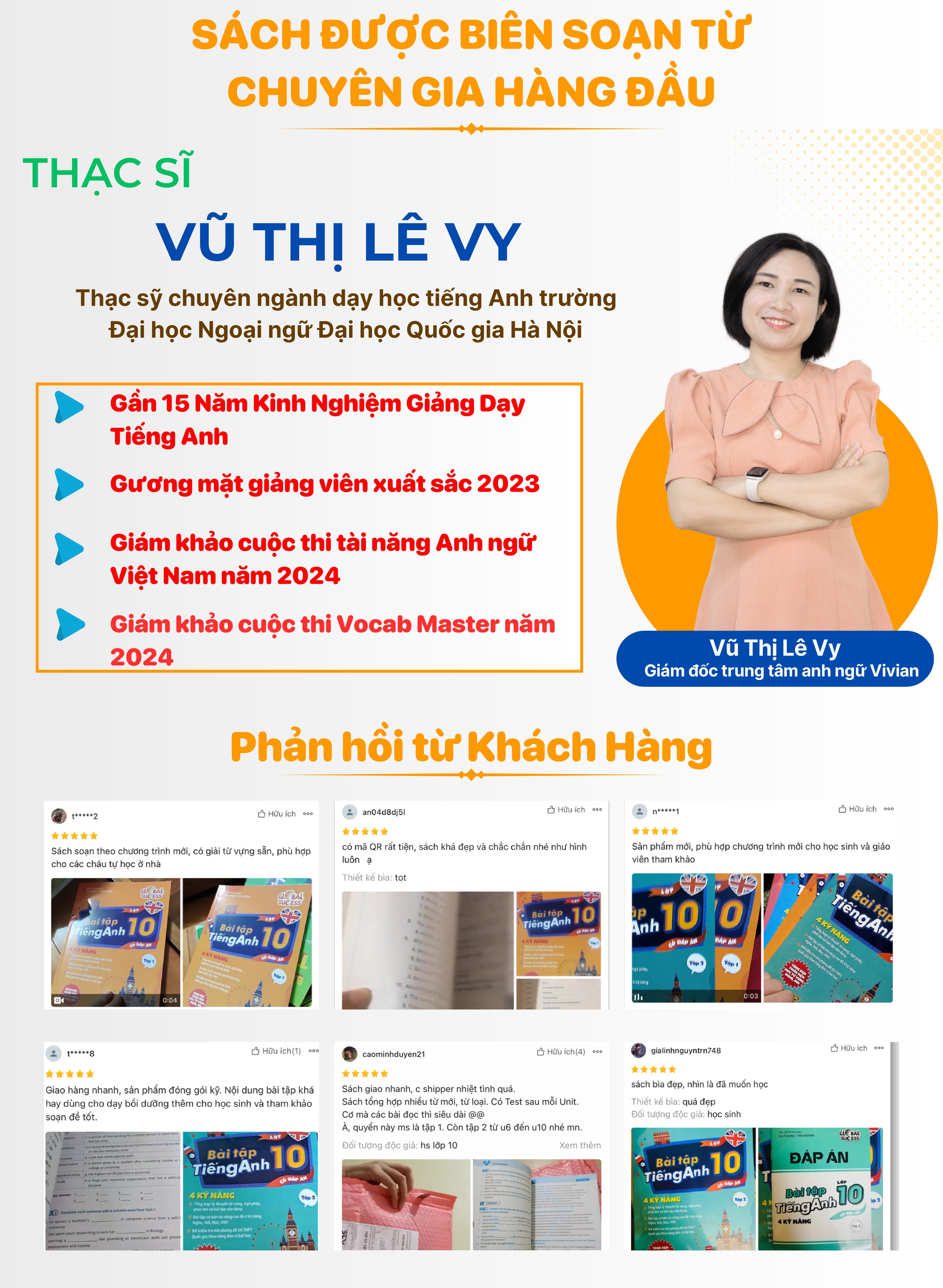Bộ sách bài tập tiếng Anh Global Success được các thầy cô và học sinh đánh giá cao nhờ sự đầu tư kỹ lưỡng, tính hệ thống, và đổi mới trong phương pháp biên soạn. Các thầy cô thể hiện sự quan tâm lớn do bộ sách cung cấp rất nhiều tài liệu học tập bám sát theo sách giáo khoa mới của Bộ Giáo dục, giúp tiết kiệm thời gian soạn bài. Đặc biệt, bộ sách được thiết kế đầy đủ 4 kỹ năng, có phần mềm học tập kèm theo với mã QR, và đáp án rõ ràng phù hợp cho cả học trên lớp và tự học tại nhà.